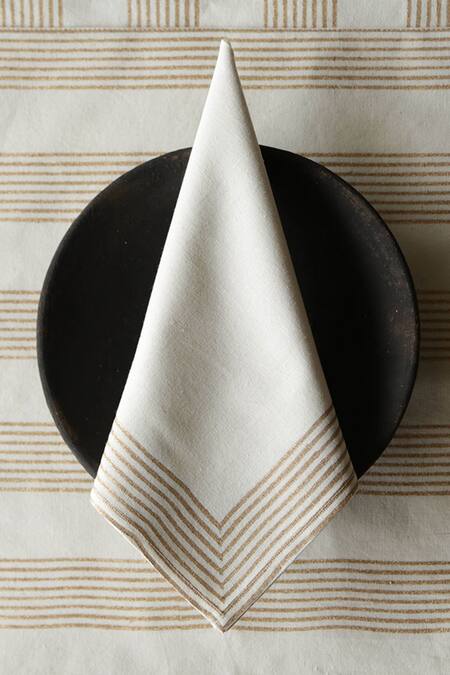 White Cotton Block Print Linija Placemat Set Of 4