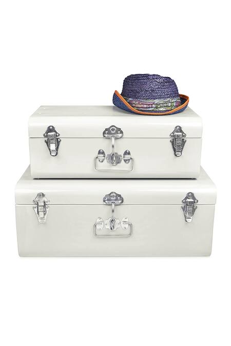 Off White Metal Solid Rectangular Storage Trunks - Set 2