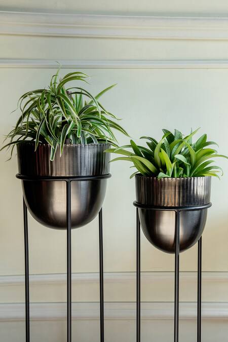 Buy_Logam_Black Mild Steel Plain Nordic Planter - Set Of 2_Online_at_Aza_Fashions