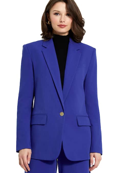 Buy_Mac Duggal_Blue Polyester Lapel Collar Solid Blazer _at_Aza_Fashions