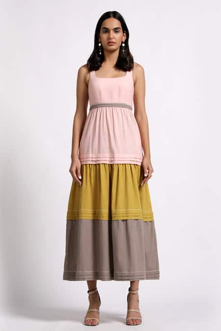Multi Color Cotton Plain Straight Aria Tiered Dress