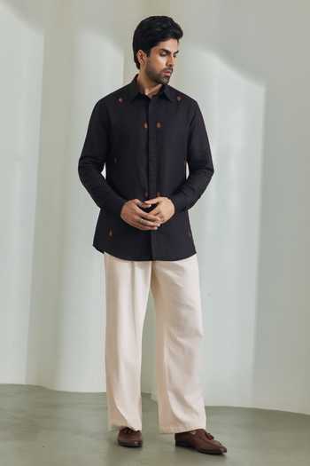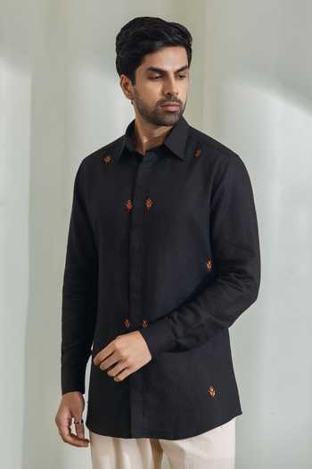 Black Linen Hand Embroidered Shirt