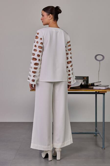 Ivory Crepe V-neck Nora Cut Out Top