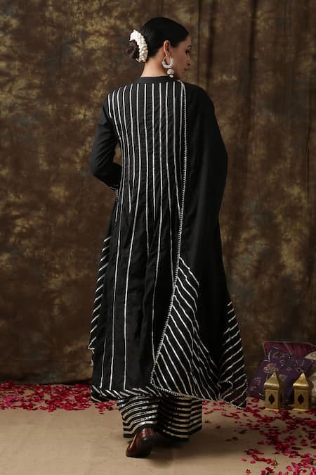Black anarkali with gota work detail. Comes with flared pant and dupatta.