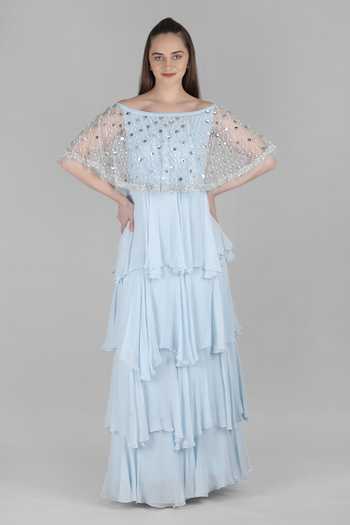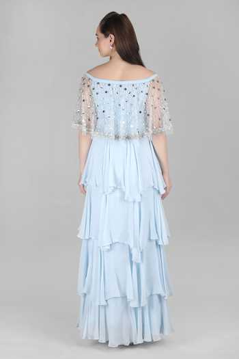 Blue Chiffon, Viscose Off-shoulder Ice Layered Dress