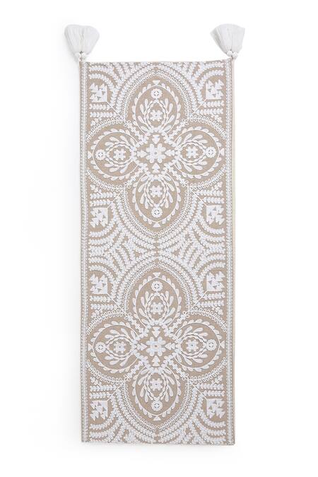 Beige 100% Cotton Embroidery Mehrab Floral Table Runner