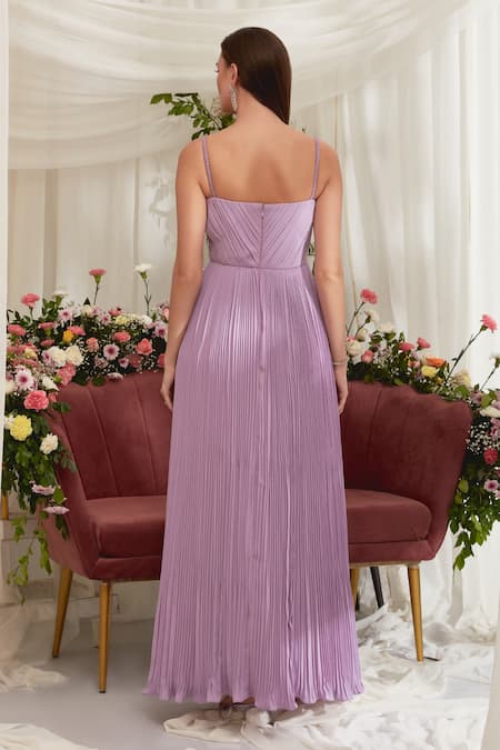 Purple Luxury Heavy Georgette Sweetheart Neck Melete Pleated Details Gown