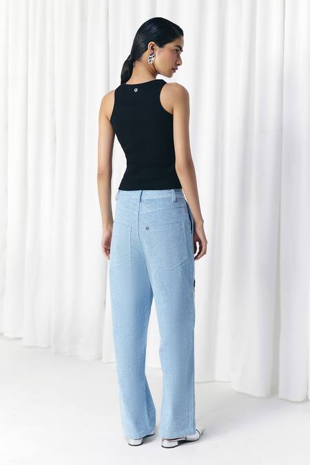 Black Cotton Round Neck Eyelet Rib Top