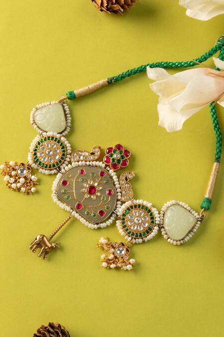 Hand carved peacock motif, Kundan stone embellishments, Pearl drop accents