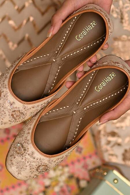 Coral Haze_Ivory Embroidered Mia Juttis_Online_at_Aza_Fashions