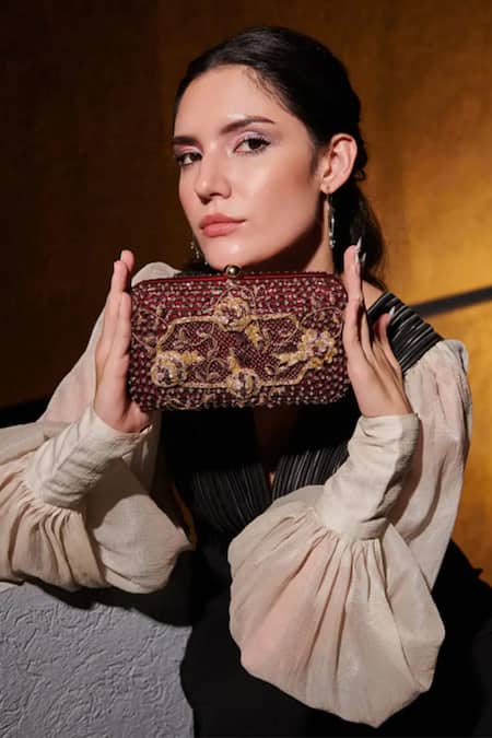 Maroon Embroidery, Beads Miebox Embellished Clutch