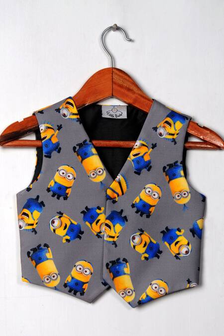 Grey Cotton, Kota Doria Minion Print Waistcoat