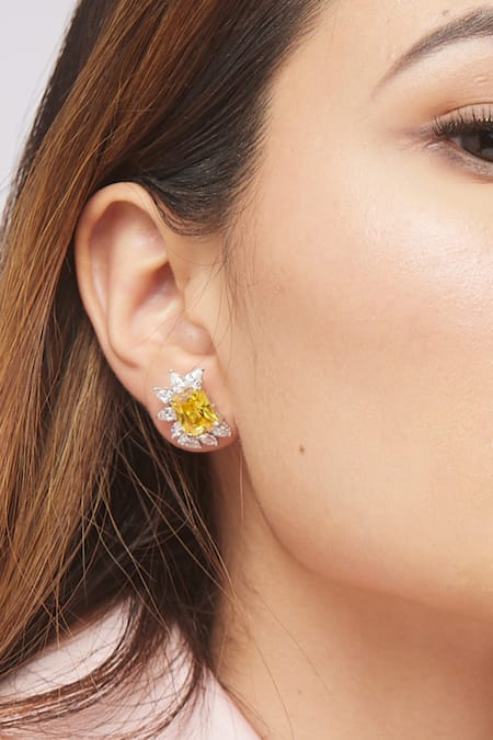 Yellow Imitation Diamonds Citrine Embellished Ear Clips