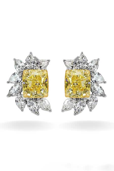 Yellow citrine ear clips featuring AAA+ grade zircon embellishments