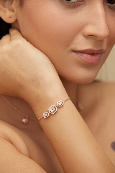 White gold plated cuff bracelet featuring baguette cut diamond stones