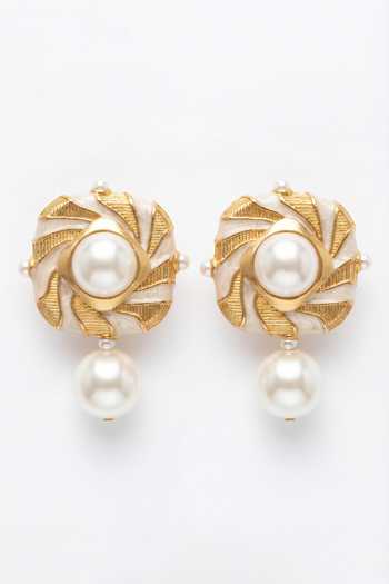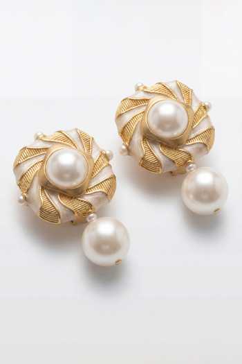 White Pearls Audrey Grace Embellished Earrings