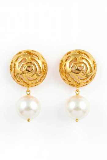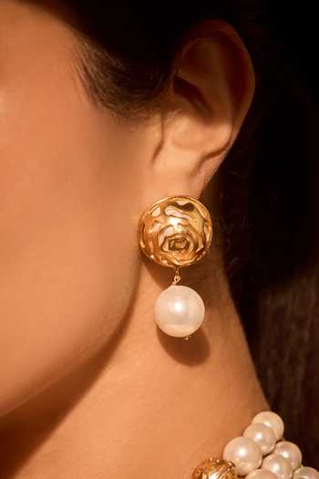 Rosette-shaped drop earrings featuring intricate floral detailing that catches light beautifully. Lightweight design ensures comfortable all‑day wear while the classic rosette motif adds vintage charm.