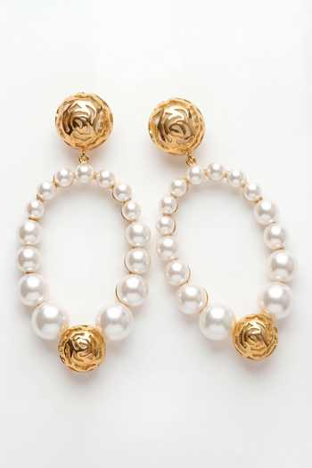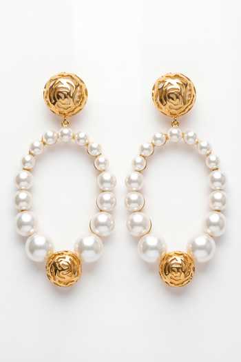 Cascading pearl details, 22kt gold-plated brass, Nickel-free finish