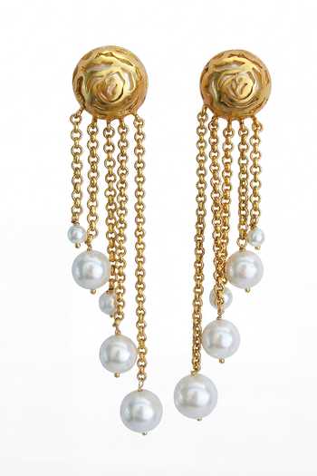 Pearl rosette danglers that bring timeless sophistication to any look. The lightweight design ensures comfortable all-day wear while lustrous pearls arranged in a rosette pattern add graceful movement and dimension.