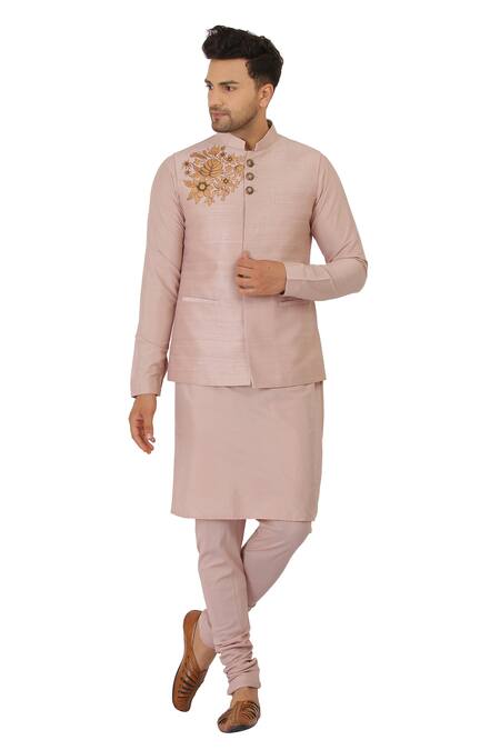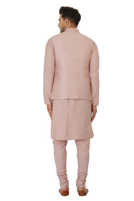 Pink Silk, Cotton Embroidery Bundi Jacket Kurta Set