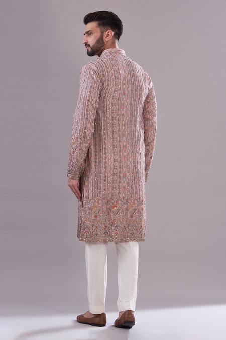 Mud pink kurta featuring multi thread work and floral pattern embroidery