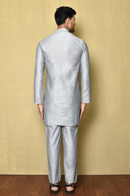 Grey full sleeve kurta with mandarin collared neckline. Paired with pant.