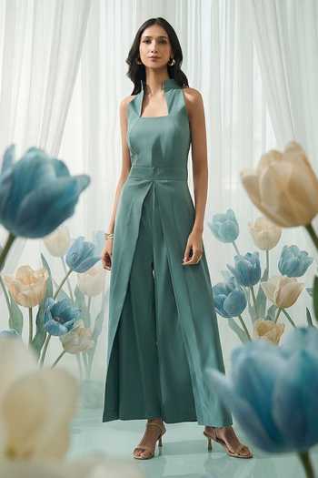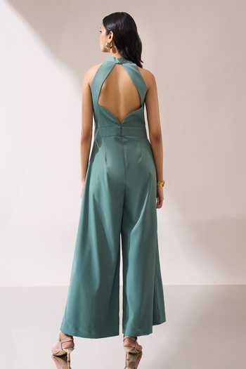Green High-collar Slit Jumpsuit