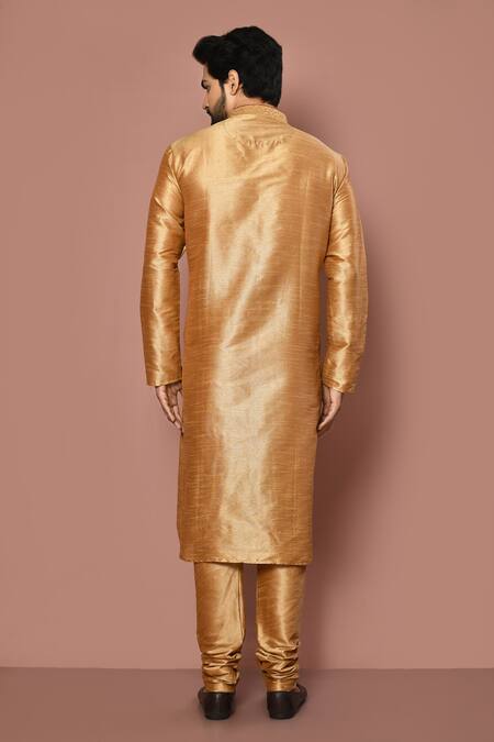 Gold Dupion Silk Embroidered Thread Placket Kurta Set