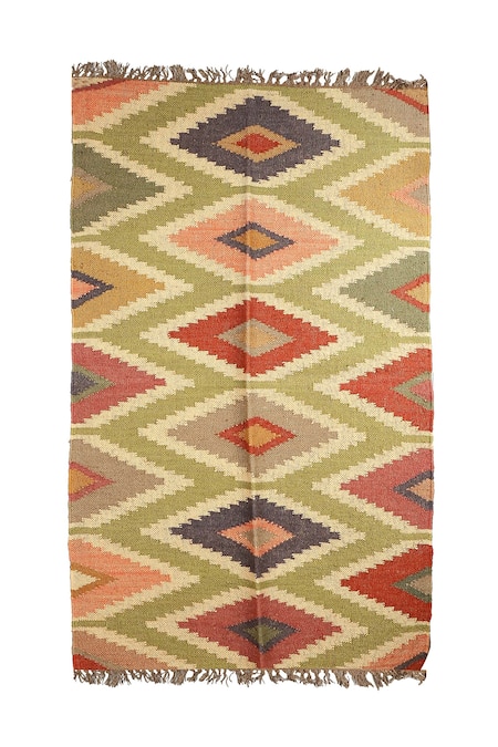 Product Finish: Kilim, Hand woven geometric pattern, Dimensions (in ft): 3 x 5, Weight (in kgs): 1.7, Thickness (in mm): 5, Note: Only the rug shown in the image is being sold