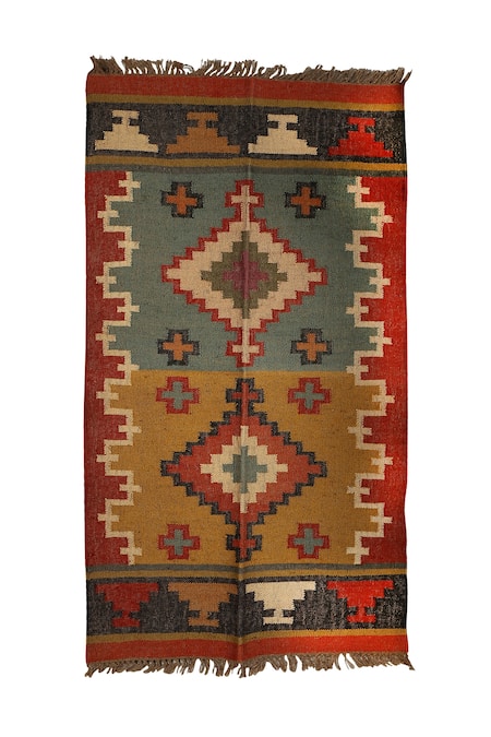 Product Finish: Kilim, Hand woven geometric pattern, Dimensions (in ft): 3 x 5, Weight (in kgs): 1.7, Thickness (in mm): 5, Note: Only the rug shown in the image is being sold