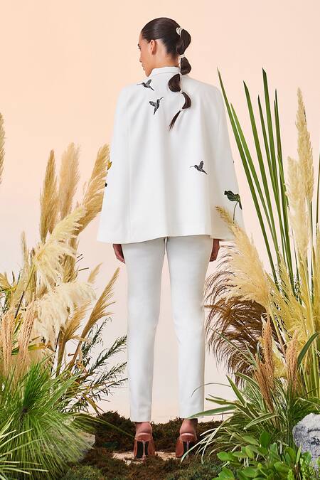 Shahin Mannan_White Double Crepe Narrow Pant_Online_at_Aza_Fashions