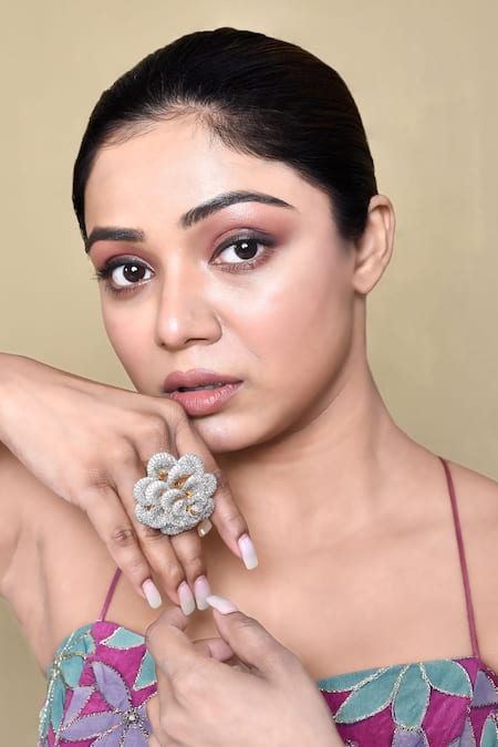 White American Diamond Embellished Rose Cut Work Ring