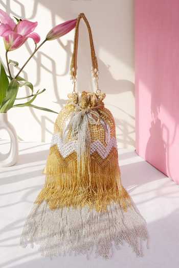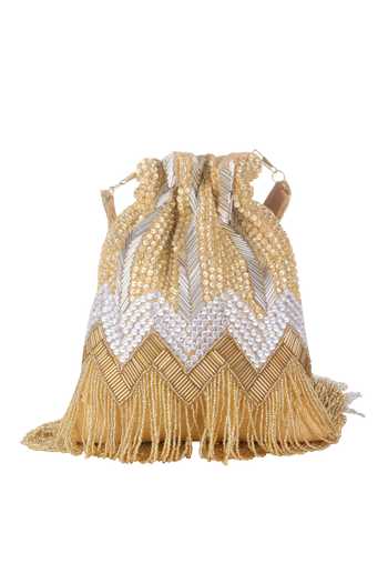 Gold Beads, Sequins, Tassels, Pearls Beaded Chevron Pattern Potli Bag