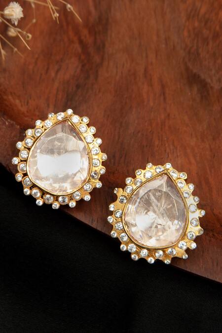 Gold Plated Cut Work, Maharaja Swarna Moissanite Polki Embellished Studs