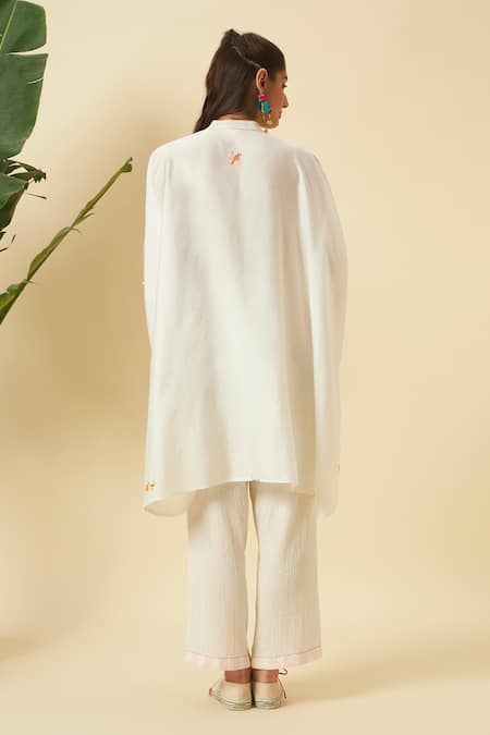 Ivory Cotton Embroidery Mandarin Collar Kurta And Pant Set