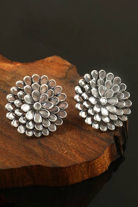 Silver Plated Floral Checker Ear Studs