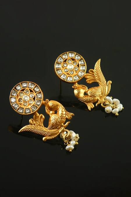 Buy_Noor_Gold Plated Gota Patti Kundan Studded Carved Bird Earrings_at_Aza_Fashions