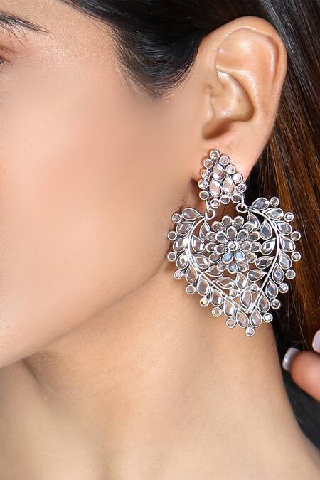 Silver teardrop earrings featuring intricate checker stone embellishments