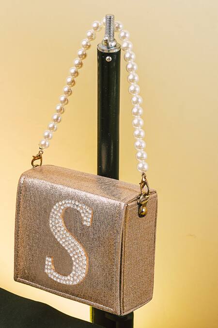 Shop_NR By Nidhi Rathi_Gold Crystal S Letter Embellished Clutch