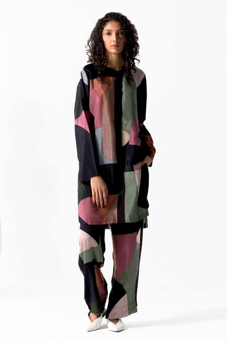 Buy_OFRIDA_Multi Color Cotton, Silk Round Neck Geometric Mania Print Tunic_at_Aza_Fashions