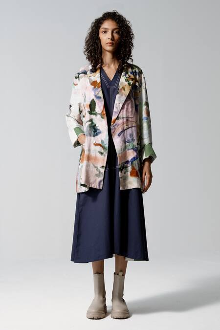 Multi color linen jacket featuring a lapel collar and full sleeves