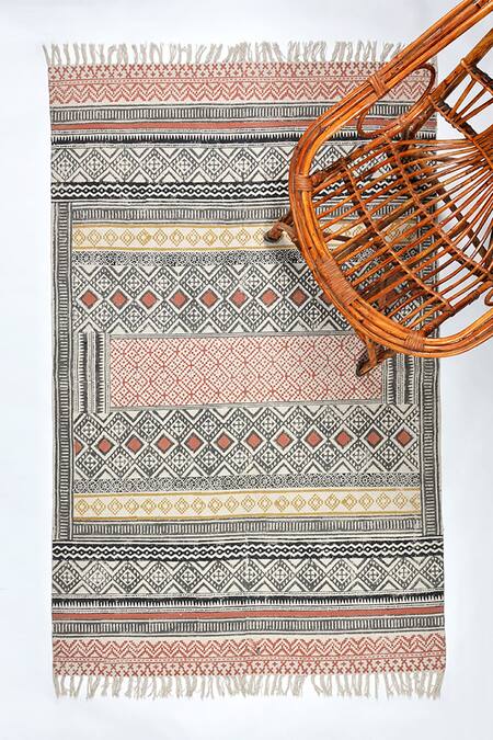 Buy_Orna_Maroon 100% Cotton Block Print Hand Rug_at_Aza_Fashions