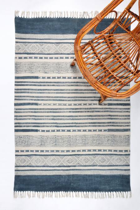 Blue 100% Cotton Block Print Hand Rug