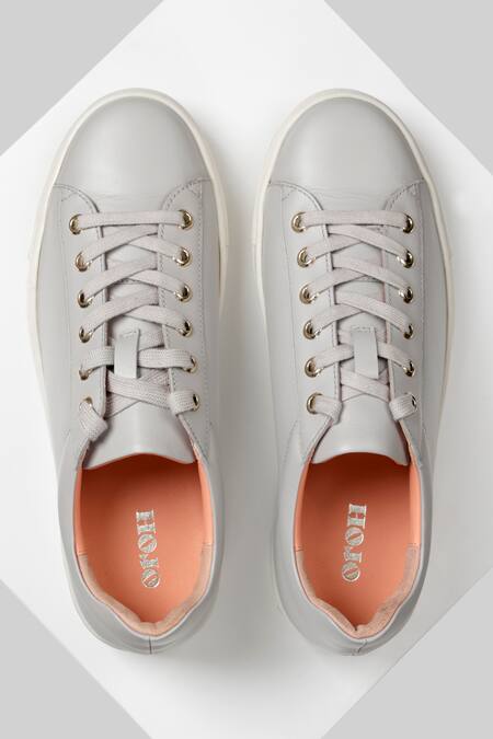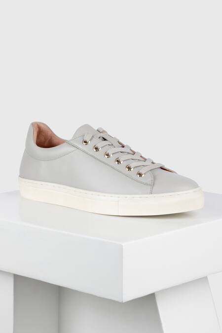Buy_Oroh_Grey Bailen Leather Solid Sneakers_Online_at_Aza_Fashions