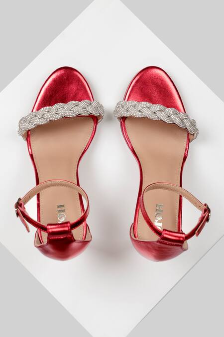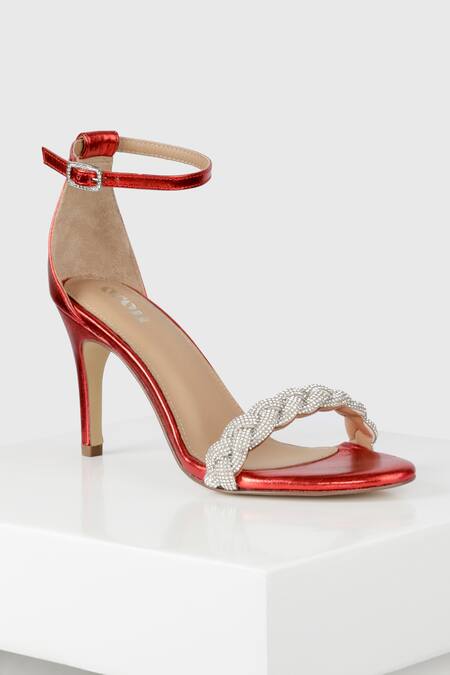 Red Rhinestones Hellin Embellished Leather Heels