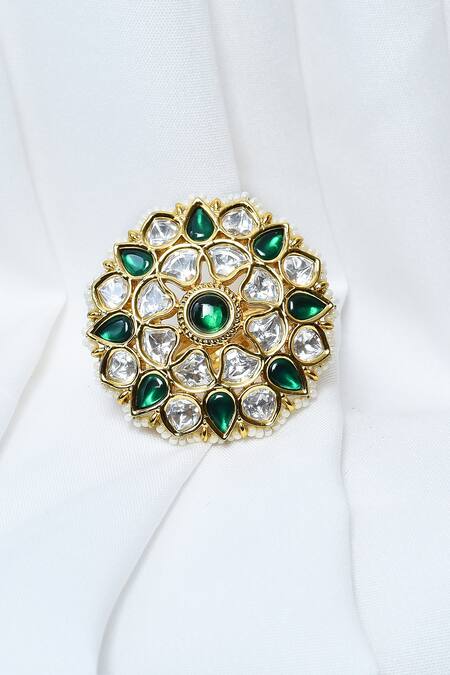 Gold Plated Pearls, Diamonds, Stones Kundan And Studded Ring