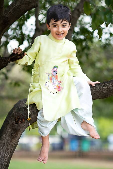 Krishnaji motif embroidery on kurta, Side tie-up detail on kurta