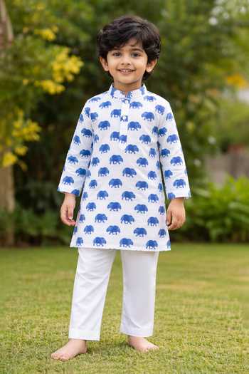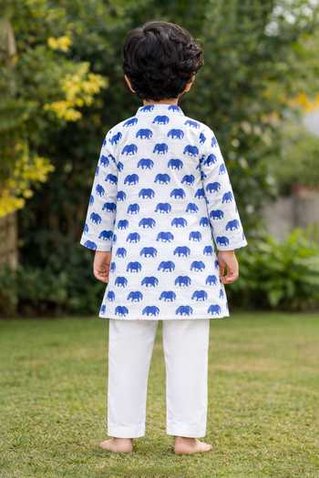 Blue elephant print, Straight kurta silhouette, Includes matching pants