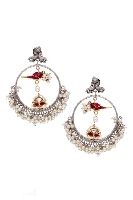 Pearl drops, Cutwork detailing in centre, Dimensions L x W (in cms): 7.5 x 6.5, Weight (in gms): 43, Closure: Push back clasp