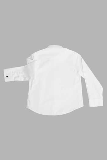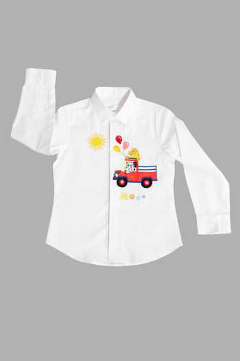 White Cotton Satin Embroidery Animal Motif Full Sleeve Shirt